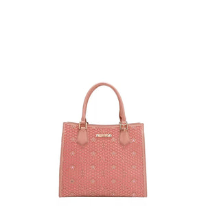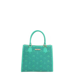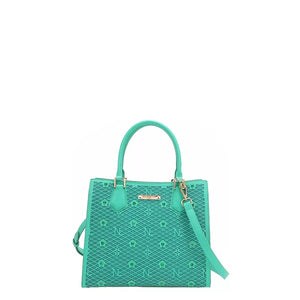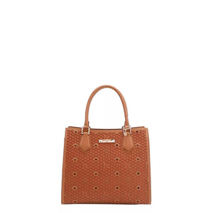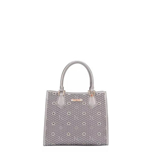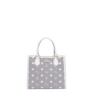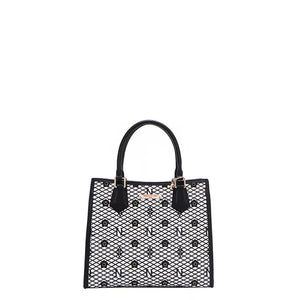 This sophisticated handbag features a distinctive monogram pattern that exudes luxury and style. Crafted with high-quality synthetic leather materials, it showcases a structured rectangular design with premium dual handles for comfortable carrying. The geometric monogram print creates a bold visual statement while maintaining timeless elegance. Perfect for professional settings or upscale casual occasions, this versatile accessory offers ample storage space with its spacious interior.