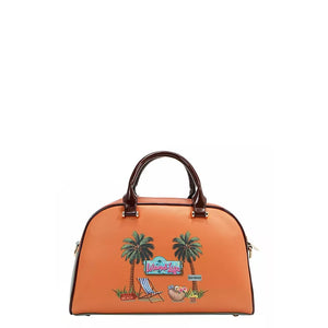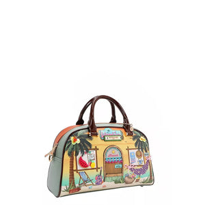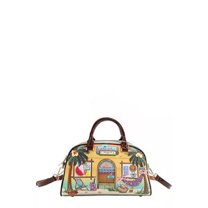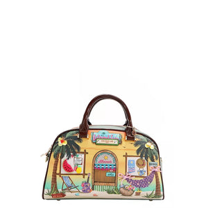 Catch the summer glow with our Sun & Sand Dome Bag, your sunny sidekick featuring breezy palms, cozy hammocks, and all the island magic to make every day feel like a beach getaway! .