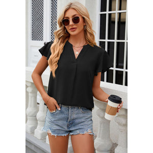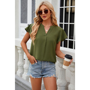 Notched Cap Sleeve T-Shirt