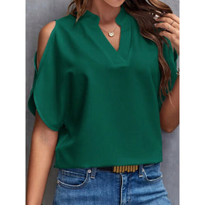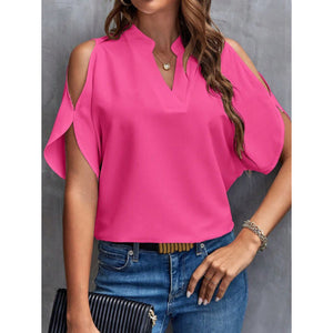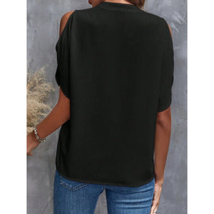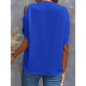 Notched Cold Shoulder Blouse