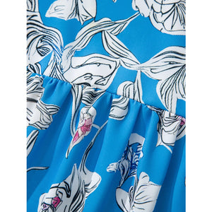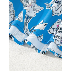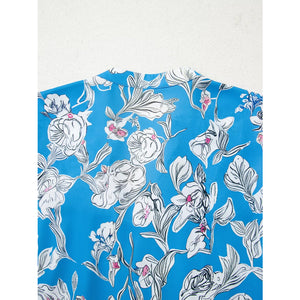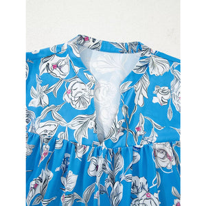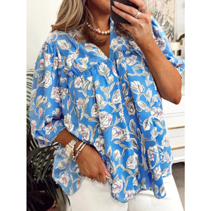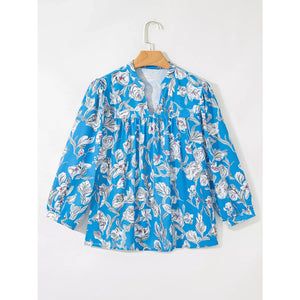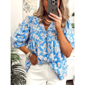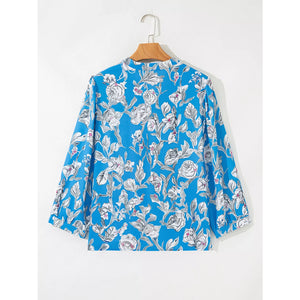 Notched Floral Print 3/4 Puff Sleeve Blouse