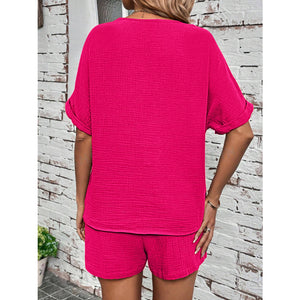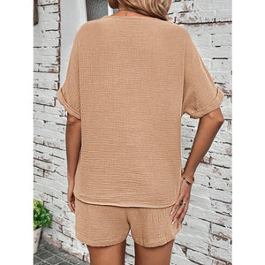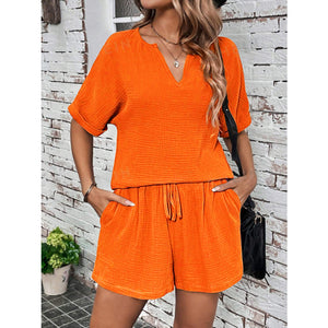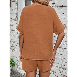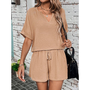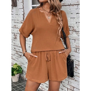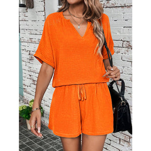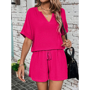 Notched Half Sleeve Top and Shorts Set