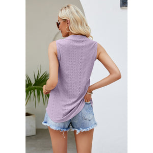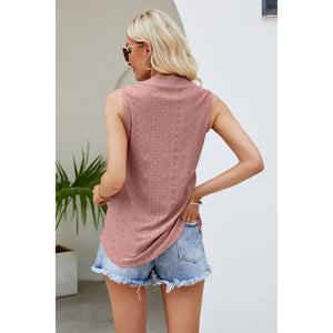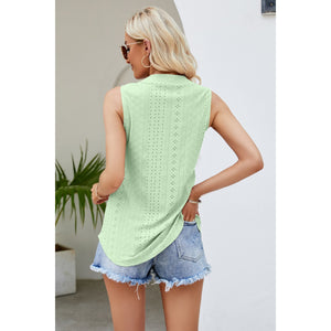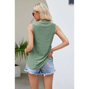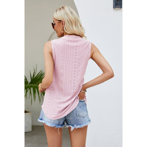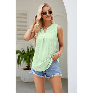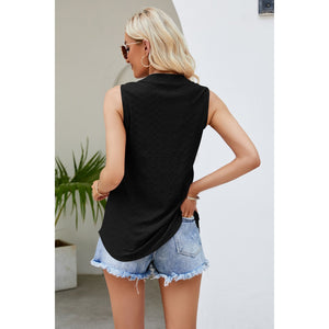 Notched Neck Curved Hem Eyelet Tank