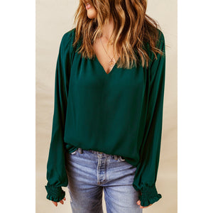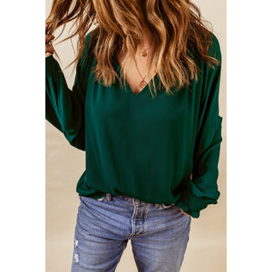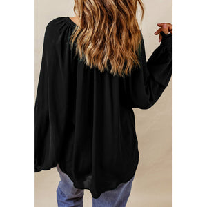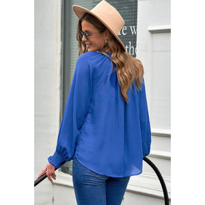 Notched Neck Lantern Sleeve Blouse