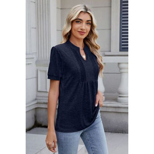 Notched Short Sleeve Top