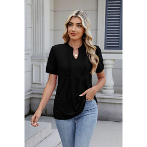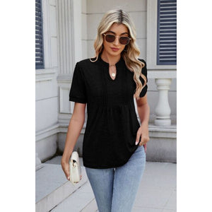 Notched Short Sleeve Top