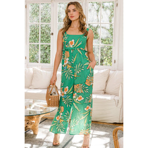 The Floral Sleeveless Wide Leg Jumpsuit is a fabulous and versatile piece that combines floral elegance with contemporary style. With its chic sleeveless design and flattering wide leg silhouette, this jumpsuit is perfect for both daytime outings and evening events. The vibrant floral print adds a touch of femininity and charm, making a bold statement wherever you go. Dress it up with heels and a clutch for a sophisticated look, or pair it with sandals for a more casual vibe. Step out in confidence and showcase your fashion-forward sense with this trendy jumpsuit that is sure to make you stand out from the crowd. Embrace the floral trend and elevate your wardrobe with this stunning piece that offers comfort and style in one chic ensemble.
