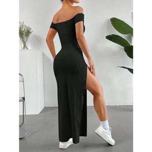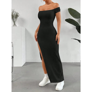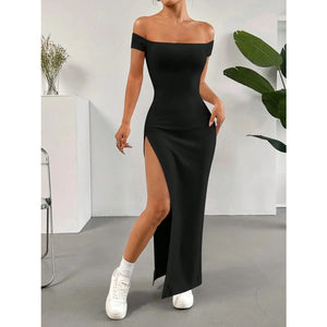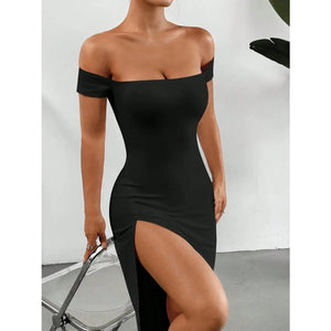 Off-Shoulder High Slit Bodycon Maxi Dress