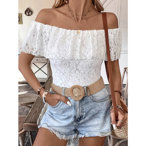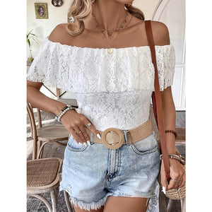 Off Shoulder Lace Ruffle Blouse