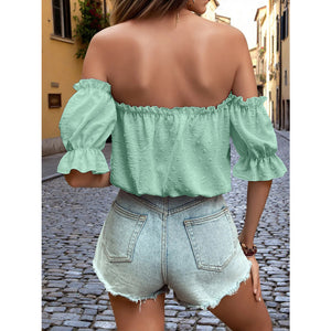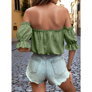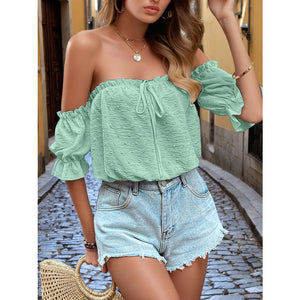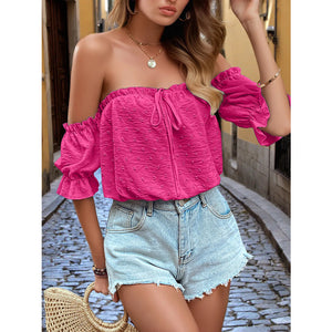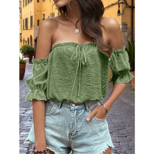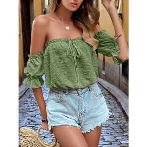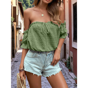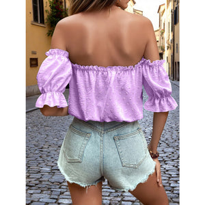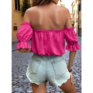 Off-Shoulder Swiss Dot Blouse with Tie Front Detail