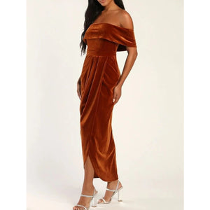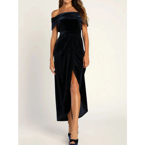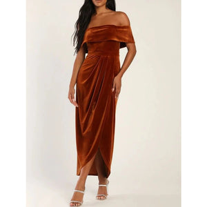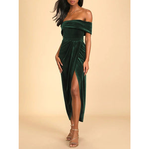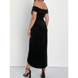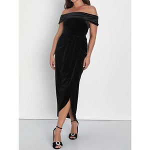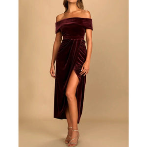 Off-Shoulder Wrap Dress with Side Slit