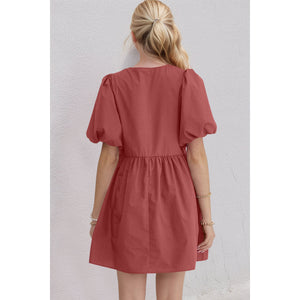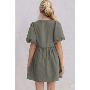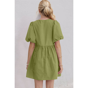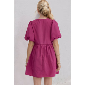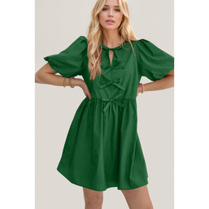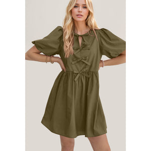 Oh Bow Ruched Puff Sleeve Mini Dress