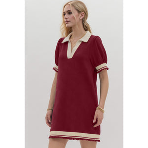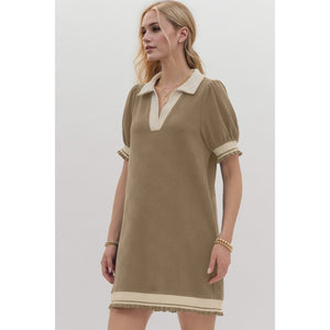 Oh Frill Contrast Trim Johnny Collar Short Sleeve Mini Dress