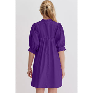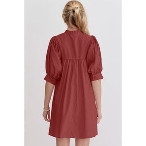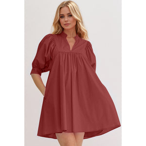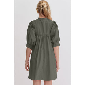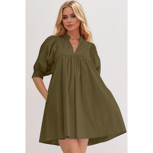 Oh Frill Notched Puff Sleeve Babydoll Mini Dress