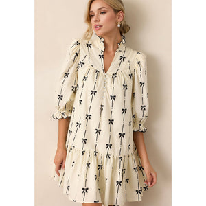 Oh Full Size Frill Bow Print Half Sleeve Mini Dress