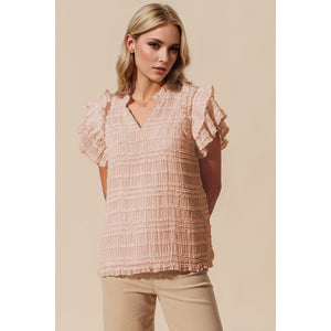 Oh Full Size Frill Notched Flounce Sleeve Blouse