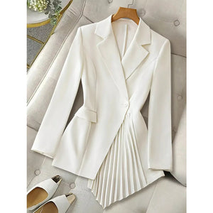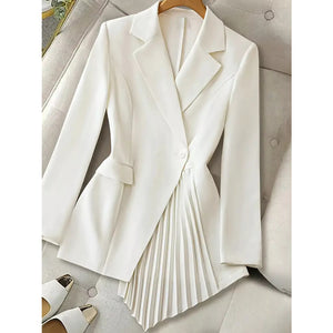 One Button Asymmetric Pleated Hem Blazer