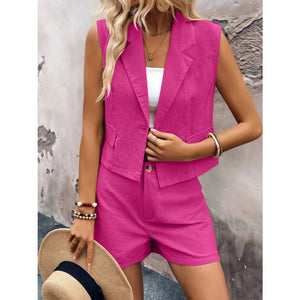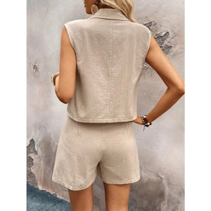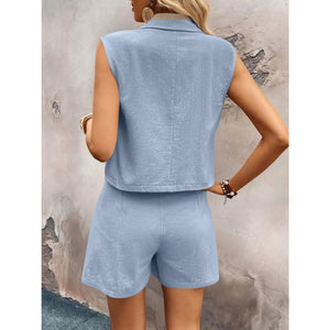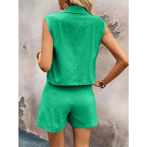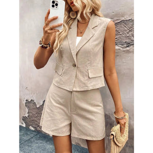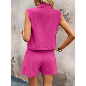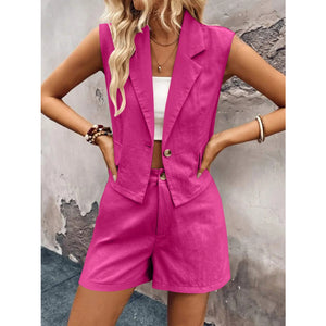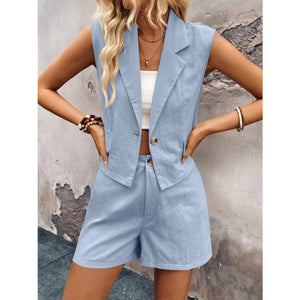 One Button Sleeveless Top and Shorts Set