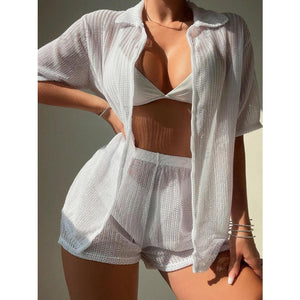Open Front Half Sleeve Top and Shorts Cover Up Set