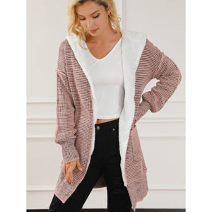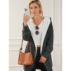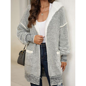 Open Front Hooded Winter Coat with Pockets