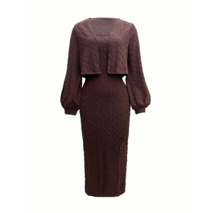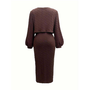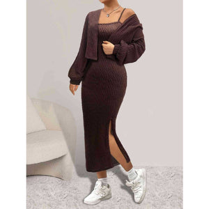 Open Front Long Sleeve Cardigan and Side Slit Cami Dress Set