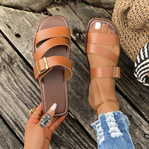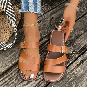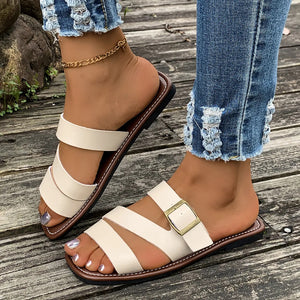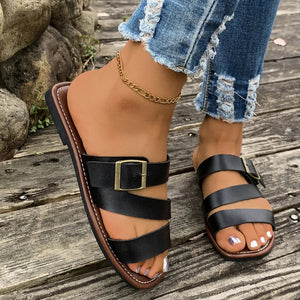 Open Toe Buckle Flat Sandals