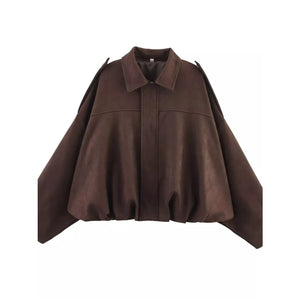 Oversized Zip Up Batwing Sleeve Casual Jacket