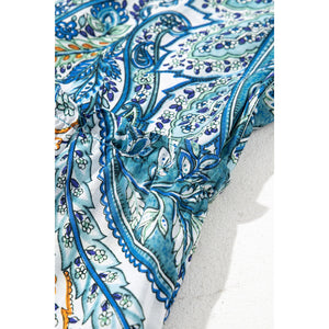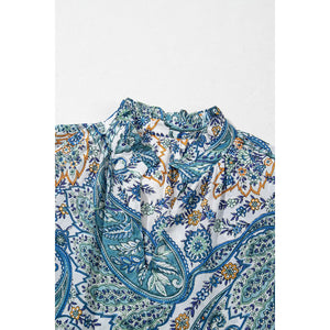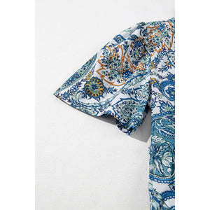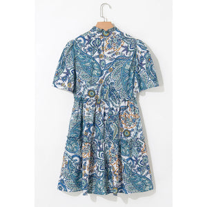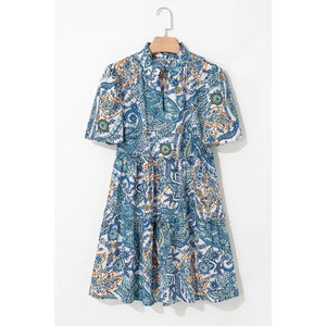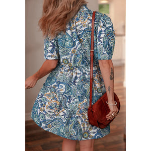 Paisley Floral V Neck Short Sleeve Mini Dress