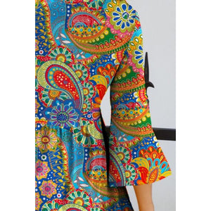 Paisley Print Round Neck Three-Quarter Sleeve Dress