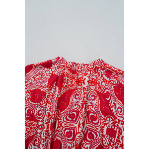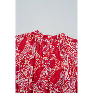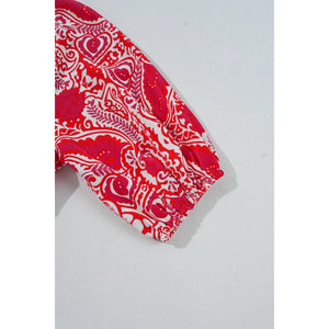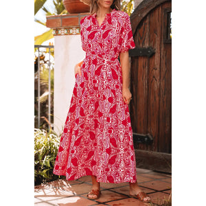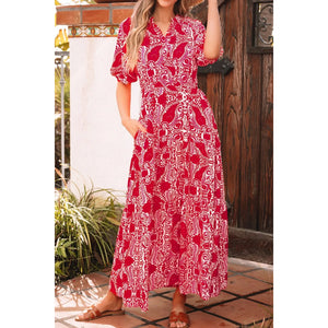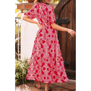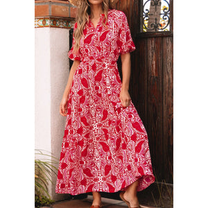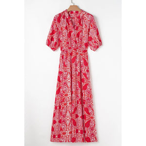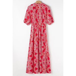 Paisley Print Side Slit Puff Sleeve High Waist Maxi Dress