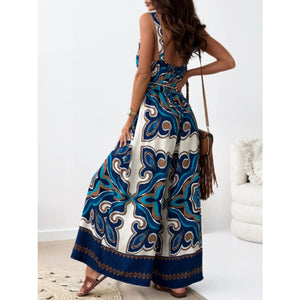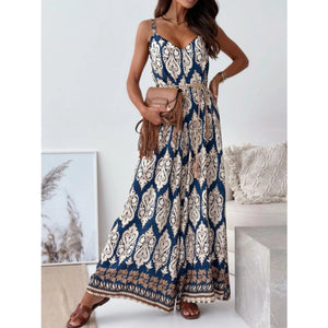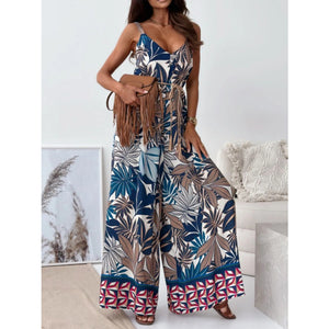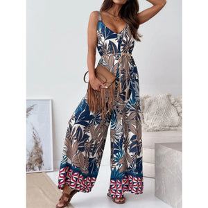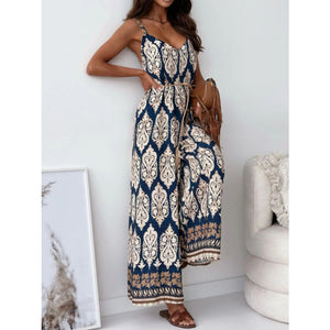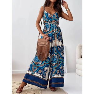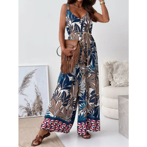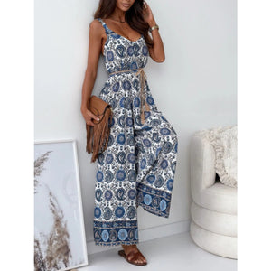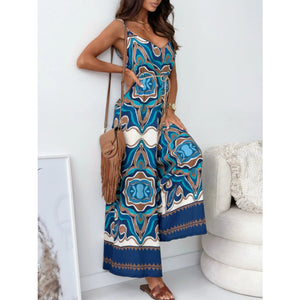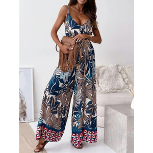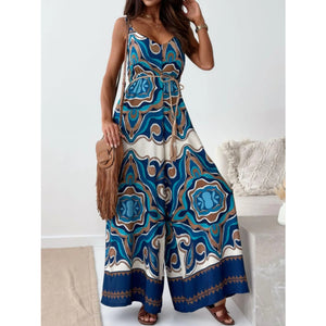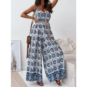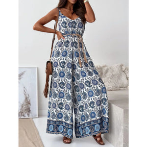 Paisley Print Spaghetti Strap Wide Leg Jumpsuit