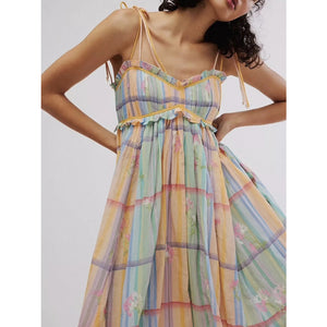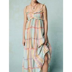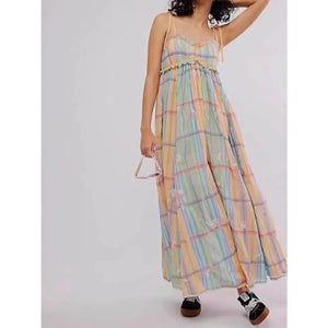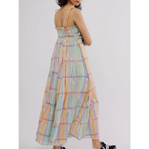 Pastel Plaid Back Smocked Maxi Cami Dress