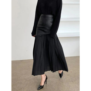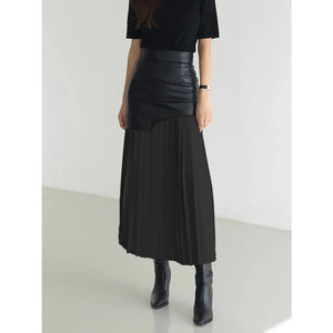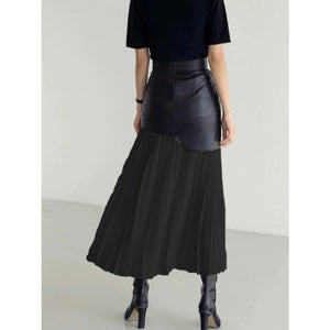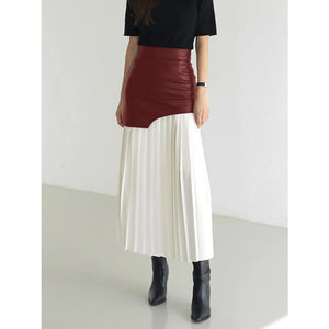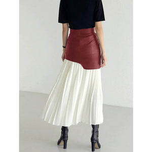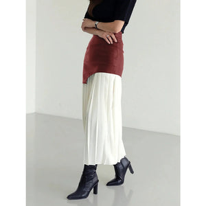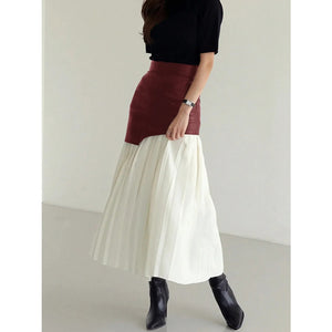 Patchwork Contrast Pleated Skirt