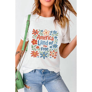 Patriotic Floral America Land of The Free Graphic T-Shirt