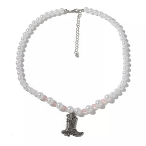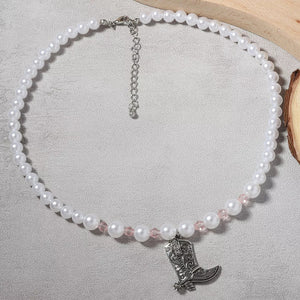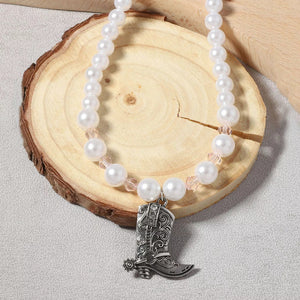 Pearl Beaded Cowboy Boot Necklace