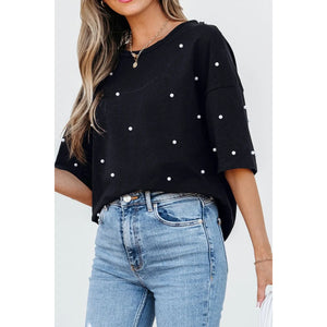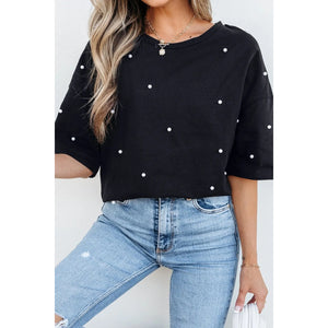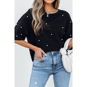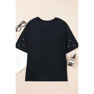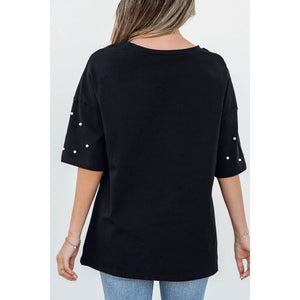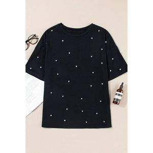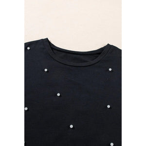 Pearl Beaded Round Neck Half Sleeve T Shirt
