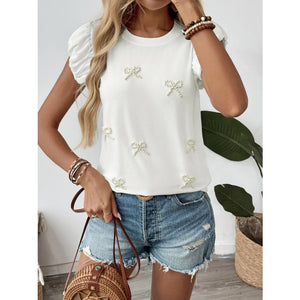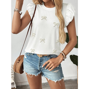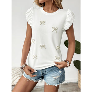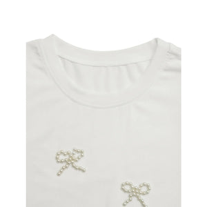 Pearl Bow Puff Sleeve T-Shirt