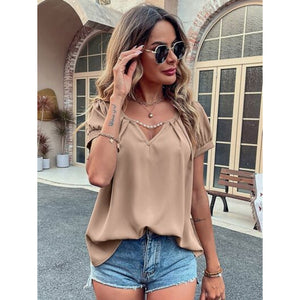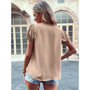 Pearl Detail Notched Short Sleeve Blouse