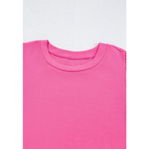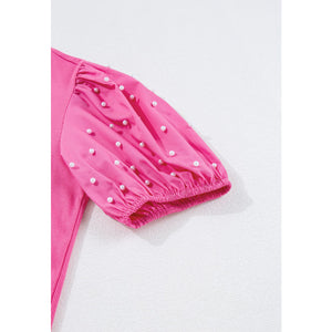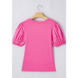 Pearl Detail Round Neck Puff Sleeve Blouse