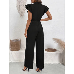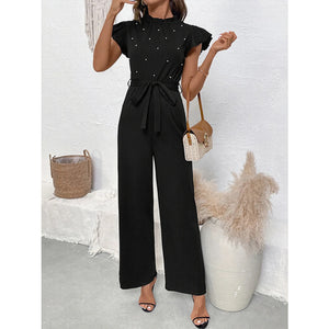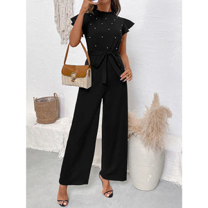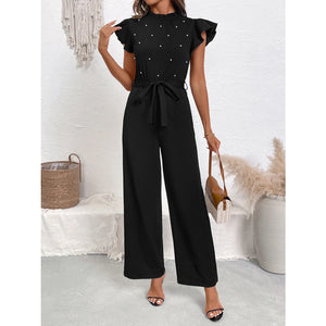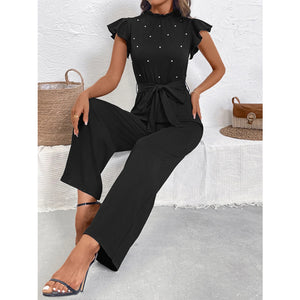Pearl Detail Ruffled Cap Sleeve Jumpsuit