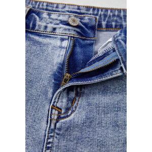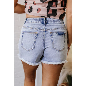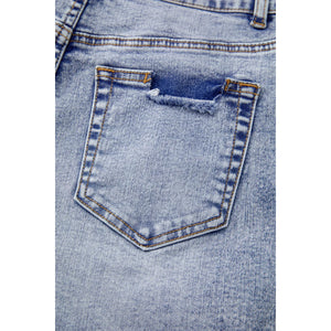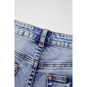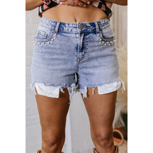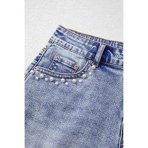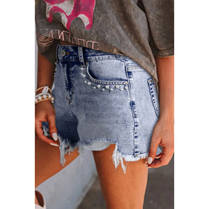 Pearl Studded Pockets Raw Hem Denim Shorts