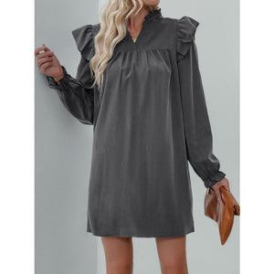Perfee Ruffled Notched Long Sleeve Mini Dress