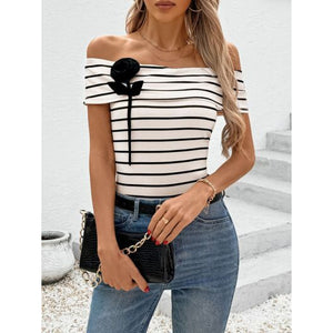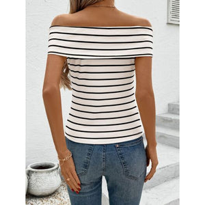 Perfee Striped Off-Shoulder Short Sleeve T-Shirt