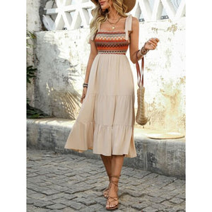 Perfee Tied Smocked Tiered Midi Cami Dress