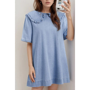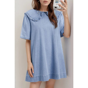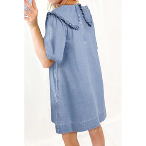 Peter Pan Collar Short Sleeve Denim Dress