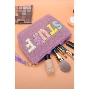 Phalaenopsis Sparkle Letter Pattern Tassel Zipper Makeup Bag