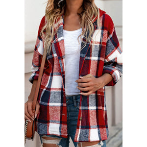 Plaid Button Up Hooded Shacket