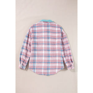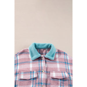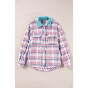 Plaid Collared Neck Flap Pockets Shacket