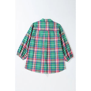 Plaid Collared Neck Three-Quarter Sleeve Blouse