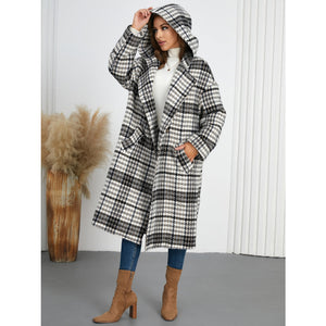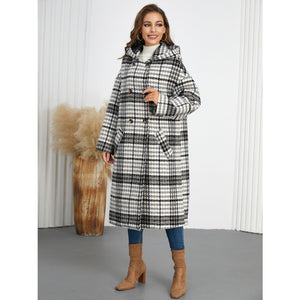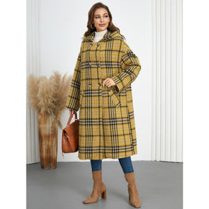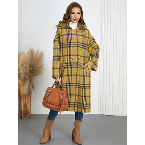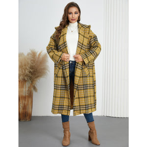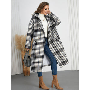 Plaid Double-Breasted Long Sleeve Longline Coat